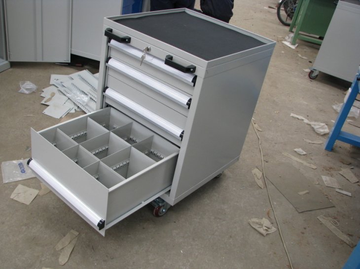 結(jié)構特點: 1、 高強度的結構(gòu)設計和噴粉表麵(miàn)處理工藝,能適應工廠較複雜的工(gōng)作環境。 2、 裝有(yǒu)優(yōu)質軸承和導軌,保證抽屜承受額定載荷時亦能輕鬆順暢開合(hé)。 3、 根據需(xū)要可自由選擇配置不同(tóng)高度的抽(chōu)屜,充分滿足生產現場的需要。 4、 可(kě)以配置帶有防油膠墊的頂框,保護放置物品不受損害(hài)以及防止(zhǐ)物品滑落。 5、 鎖具先進,隻用一把鎖就能(néng)鎖上所有的抽屜,保證物品安全。 6、 櫃(guì)體底(dǐ)部配有(yǒu)墊腳,保護櫃體在(zài)放置或移動時不受損壞,方便用叉車搬運。