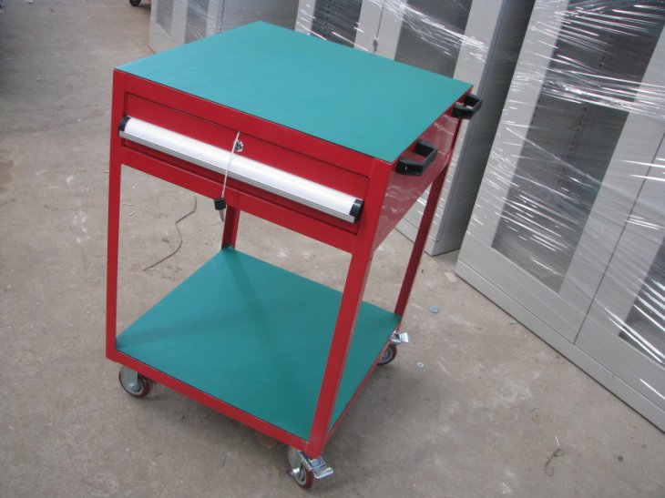 工具車是可以移動的工具櫃,適合在生產現場安全、合理地運送工具(jù)和配件。 工具車由各種型號的工具櫃增加頂(dǐng)櫃(guì)和腳輪等移動部件組成。 工具車的外型尺(chǐ)寸的(de)高度:重型工具車為所選用的工具櫃的高度(dù)加上140mm;輕型工具車為所造工具櫃高度加上80mm。高強度的結構設計和陰極電泳底漆表麵處理工藝,能適應工(gōng)廠較複雜的(de)工作環境(jìng)。