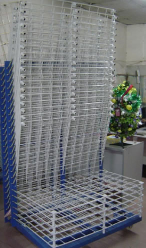 適用範圍: 廣泛適用於絲印(yìn)廠、轉(zhuǎn)印燙畫(huà)廠、印刷(shuā)電路板廠、電子加工廠、飾品廠、鞋廠、皮(pí)帶皮革廠、防靜電器材廠、木器塗裝廠、彩繪玻璃、上(shàng)糊乾(qián)燥、中大型家俱廠(chǎng)、百中窗廉廠,濺鍍廠等。 千層架分輕便型、通用型、加強型、耐高(gāo)溫型四種: 1)輕便型 規格有:600X600MM、900X600MM、1000X650MM 線(xiàn)徑:5X3MM 層高:25MM 層數:50層 2)通用(yòng)型 規格有:900X600MM、1000X650MMM 、1100X700MM 線徑:5X3MM 層高:25MM 層數:50層 3)加強型 規格(gé)有:1000X650MM、1000X800CM、1200X1000MM 線徑:6X4MM 層高:25/50/65MM 層數(shù):50/25/20/層 4)耐高溫型(xíng) 規格有:1000X650MM、1400X650MM 線徑:6X5MM /6X4MM 層高:100/80MM 層數:12/15層。