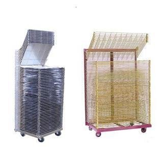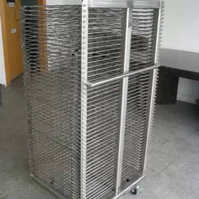 千層架,又叫(jiào)絲印千層架、乾燥架、千層車、晾曬架、晾紙架、網架(jià)、層架台車。適用(yòng)於印刷(shuā)、上膠、噴漆、上色,濺鍍(dù)後的晾乾置放器材。活動式(shì)多層網格設計,置放空間大,操作方便,節省車間、庫房麵積,並可適用於所放產品的常溫(wēn)晾乾和進焗爐高溫烘烤。 使用的材(cái)料有(yǒu)不鏽鋼(gāng),碳鋼等。 主(zhǔ)架一般采用角鋼製作(zuò),表麵處理有噴漆/烤漆/電鍍鋅; 網(wǎng)片采用2-12MM的線材製作,表麵處理的方式有電鍍彩鋅,噴塑(也叫包(bāo)膠,用於防止產品劃傷采取的一種表麵處(chù)理(lǐ)方式)。