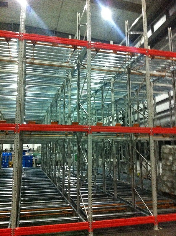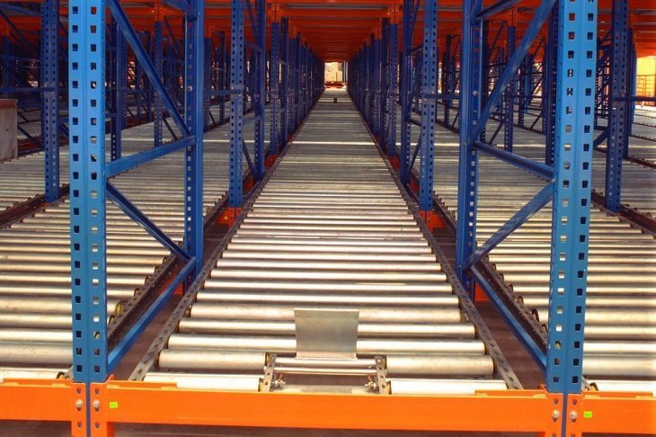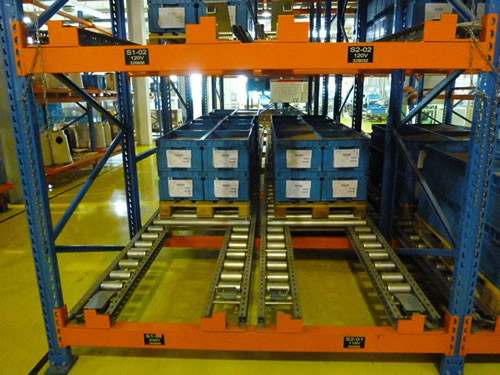 在貨架的組與組之間沒有作業通道,從而增加了60%的空間利用率,提高了倉儲的容積率;托盤操作遵循先(xiān)進先出(chū)的原則(zé);自動儲存回轉;儲存和揀選兩個動作的分開大(dà)大提高輸(shū)出量,由於是自重力使貨物滑動,而且沒有操作通(tōng)道,所(suǒ)以減少了運輸路線和叉車的數量。