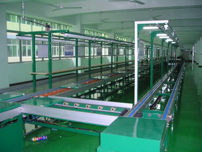 流水線又稱為裝配線,一種工業上的(de)生產方式(shì),指每一個生產單(dān)位隻專注處理某一個片段的工作(zuò),以提高工作效率及產量;按照流水(shuǐ)線的輸送方式大體可以分為:皮帶流水裝配線、板鏈線、倍速鏈、插件線、網帶線(xiàn)、懸掛線及滾筒流水線這七類流水線。一(yī)般包括牽引件、承載構件、驅動裝置、漲緊裝(zhuāng)置、改向裝置和支承件(jiàn)等組成。流水線可擴展性高,可按(àn)需求設計輸送量,輸送速度,裝(zhuāng)配工位,輔(fǔ)助部件(包括快速接頭、風扇,電燈,插座,工藝看板,置物(wù)台,24V電源,風批等,因此廣(guǎng)受企業歡迎;流水(shuǐ)線是人和機器的(de)有效組合,最充(chōng)分體(tǐ)現設備的靈活性,它將輸送係統、隨(suí)行夾具和在(zài)線專機、檢測設備(bèi)有機的組合(hé),以滿(mǎn)足多品種產品的輸送要求。輸送線的傳(chuán)輸方式(shì)有同步(bù)傳輸的/(強製式),也可以是非同(tóng)步傳輸/(柔(róu)性式(shì)),根據配置的選擇,可以實現裝配和輸送的要求。輸(shū)送線在企業的批量生產中(zhōng)不可(kě)或缺。 流水線的優勢: 1.整合生產工藝,可在流(liú)水線上布置多種工位,滿足(zú)生產需求; 2.可擴展性高,可根據工廠需求,設(shè)計符合(hé)產(chǎn)品生產需求的流水線; 3.節約工(gōng)廠生(shēng)產成(chéng)本,可一定程度上節約(yuē)生產(chǎn)工(gōng)人數量,實現一定程度的(de)自(zì)動化生產,前期投入不大,回(huí)報 率高。