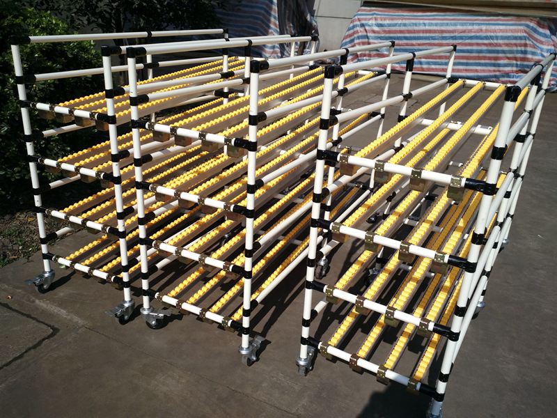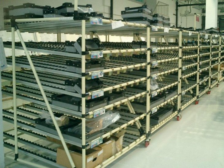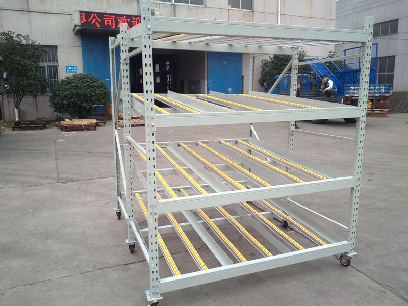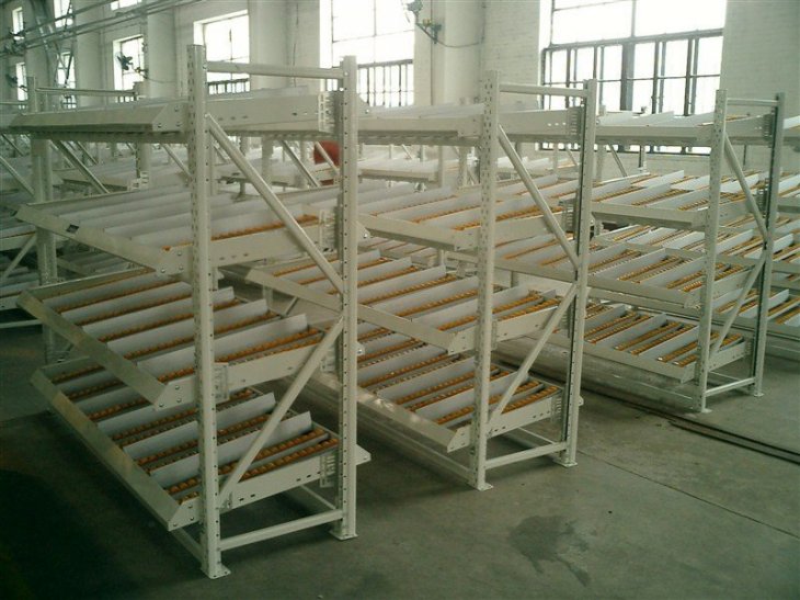 流利(lì)貨架等同於流利(lì)式貨架(jià),產品常由中型橫(héng)梁式(shì)貨架演變而成(chéng),通過滾(gǔn)道將貨物從配貨端輸(shū)送到取貨端,貨物借(jiè)助重力自動下滑,可實現“先進先出”作(zuò)業,使用成本低,存儲速度快、密度大。通常使用在企業的精益生(shēng)產流水作業。 流利貨架的特點: 1、采用(yòng)滾輪式鋁合(hé)金等流(liú)力條,利用(yòng)貨物(wù)自重實現(xiàn)貨的先進先出。 2、存取方便,適合於裝(zhuāng)配線兩側,配送中心等場所。 3、適用於大批量同類貨物的存儲,空間利用率較高,由其適合汽配工廠使用。 4、可配以電子標(biāo)簽(qiān),實(shí)現貨物的(de)信息化管理。