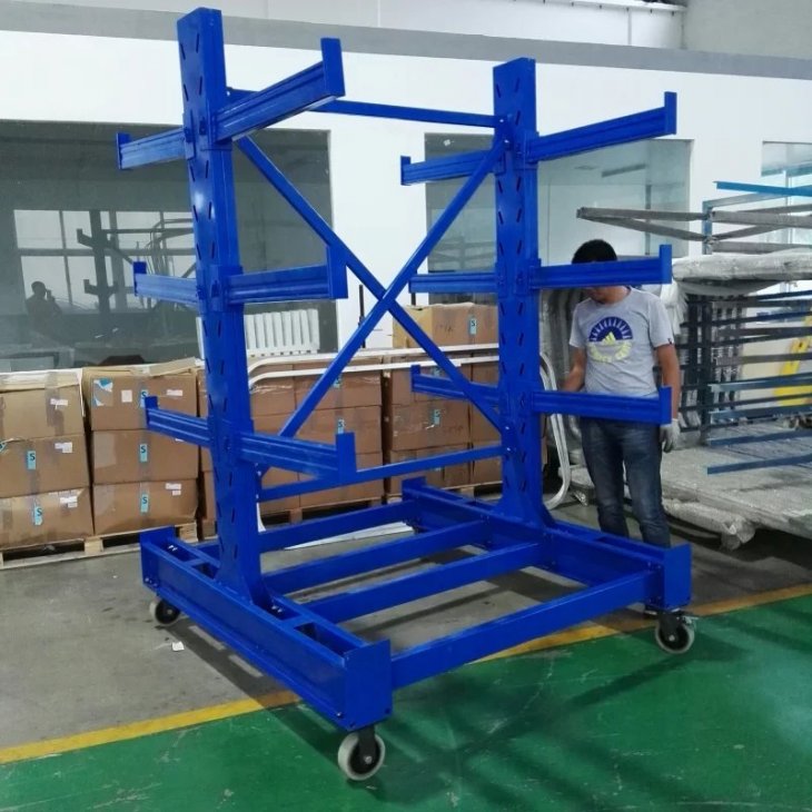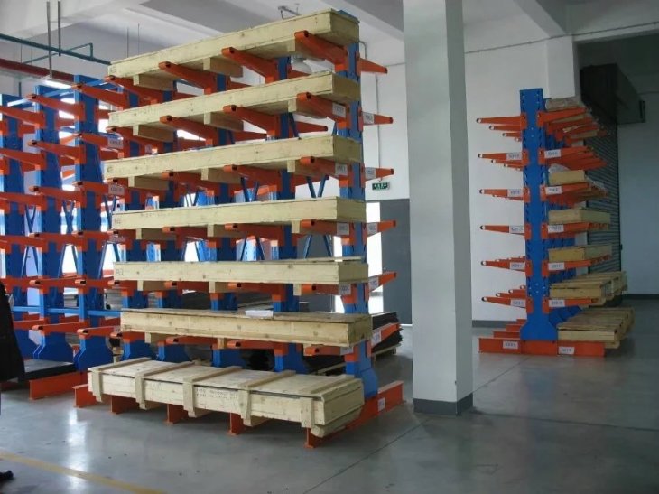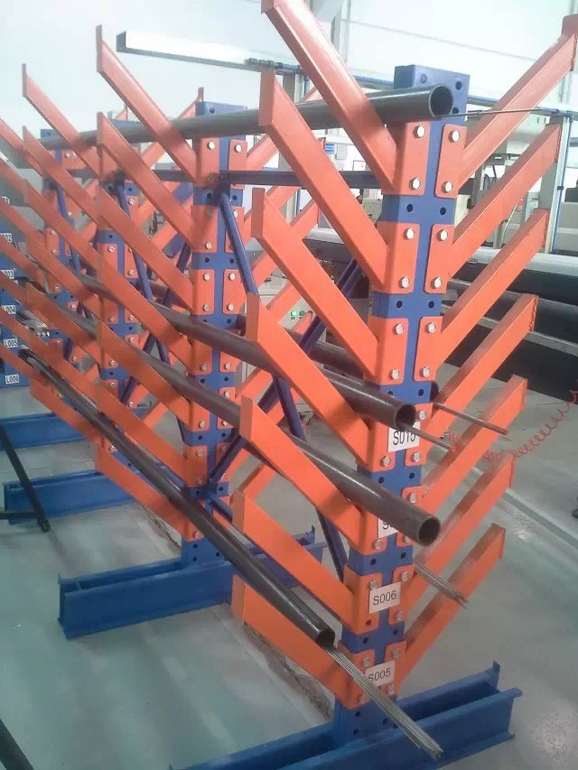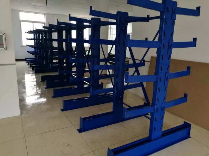 懸臂式貨架主要由立柱片、懸臂梁(liáng)、連接杆等組成,其特點是前伸的懸臂結構輕巧,載重力(lì)強,對存放不規格或(huò)是長杆件物料,能大幅度提高倉庫的利(lì)用率和工(gōng)作效率,懸臂可(kě)是單麵或雙麵。增加了木(mù)板或鋼(gāng)格板後,特(tè)別適合空間小、密度低的庫房,管理方便、視野開闊。廣泛用於(yú)機械加工及建材(cái)超市行業。 產品優點: 1、懸臂貨架係列全部采用組合式,拆裝,運輸,調節,移動等簡易方便,安全可靠。 2、采用可調式立柱,可根(gēn)據實際需要調節(jiē)隔板之間(jiān)的間距和增減隔板。 3、可充分提高空間利用率,使倉庫物資管理規範化,標準化(huà),與堆垛機或叉車相配套,既能提(tí)高(gāo)物資流通效率,降低儲運(yùn)費用,增加經濟效益,又能提高物資流通的機械化水平,減輕勞動強度,改善勞動(dòng)條件。 4、懸臂貨(huò)架長度可根據場地情況,自由(yóu)組(zǔ)合。
