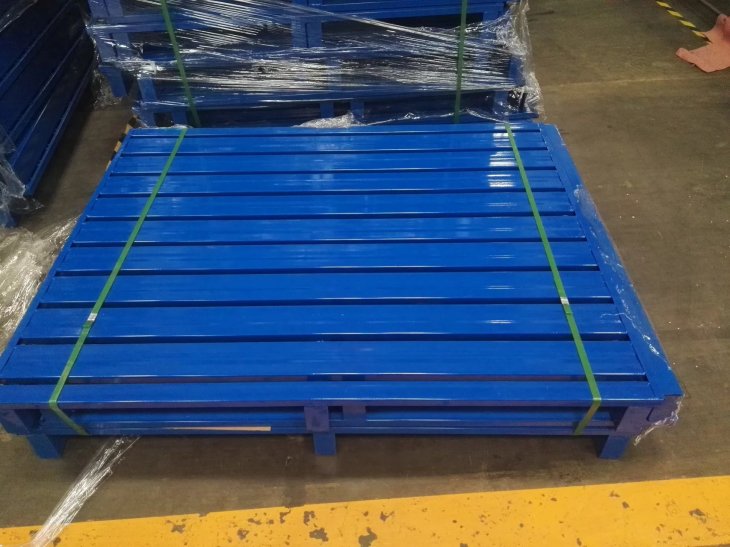 托盤(Pallet)是用(yòng)於集裝、堆放、搬運和運輸的放置作為單元負荷的貨(huò)物和製(zhì)品的水平平台裝置。一(yī)般(bān)用木材、金屬、纖維(wéi)板製作,便於裝卸、搬(bān)運單元物資和小數量的物資。托盤的(de)種類主要有木質的,塑料的,金屬等材料 木質(zhì)是(shì)現在使用較廣的,因為其價格便宜、結實;塑料托(tuō)盤比較貴點,載重也較小,但是(shì)隨著(zhe)塑料托盤製造工藝的進步,一些高載(zǎi)重(chóng)的塑料托盤已經出現(xiàn),正在慢慢的取代木質托盤(pán)。金屬托盤結實耐用,缺點是易腐蝕,價格較(jiào)高。 鋼托盤(鋼製托(tuō)盤)是傳統木托盤、塑料托盤的理想換代產品,適(shì)合叉車作業,存取貨物方便. 主(zhǔ)要用於多(duō)用途的地麵存儲、貨架存儲及貨物聯運、周轉等超輕金屬托盤係列。集裝、堆放、搬運和(hé)運輸(shū)的放置作為單元負荷(hé)的水平平台裝置。是現在工業重要的倉儲與運輸(shū)輔助設備之一(yī)。 主要材料為(wéi)鋼材(cái)或鍍鋅鋼板,經專用設備成型,各種型材互相支(zhī)撐,鉚釘連接加強,再經CO2氣體保護焊焊接而成。