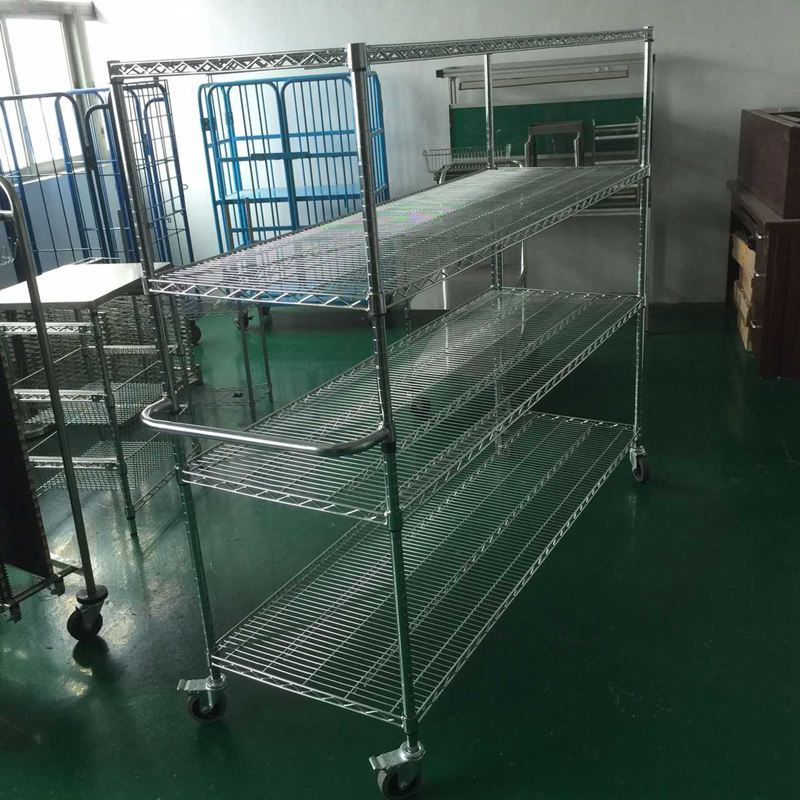 | 扶手(shǒu)可選線網(wǎng)擱板高度可調。4個萬(wàn)向腳輪, 2個(gè)帶(dài)雙(shuāng)刹車,實心橡(xiàng)膠輪胎(tāi),輪胎直徑100mm 清潔簡便(biàn),表麵光(guāng)滑,防震,耐摩擦,耐腐蝕(shí)。以未組裝形式(shì)發貨,組裝簡(jiǎn)便。